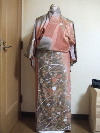 先日 3月の京都きものフリーマーケットで購入した訪問着が仕上がって届きました どんな感じに仕上がったのか 早く確認したかったのですが なかなか出来ずに 今日に至りました・・・やっと荷を解いて 新しく私の元へとやってきた 訪問着とご対面ですジャ~~~ンこんな感じです満足 満足 今までにない 落ち着いた柄と色で 新鮮です早く着たいなぁ・・・でも 訪問着って なかなか着る機会が・・・誰か お祝い事に呼んでくれぇ~~~でも 袷の時期にね