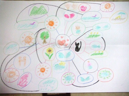 今日から レベル3の オーラソーマの授業が始まりましたその授業の中で マインド・マップというものを作成することに・・・とりあえず 本格的な方法ではないのですが 今回は すべて絵で表現まず 核となるテーマを描き そのテーマの絵からイメージするものを10個描くその10個から それぞれイメージするものを また2個描いていく・・・すべて イメージしたものは そこから道を作ってあげるのです仕上がりはまず テーマの「幸せ」から 「ハート」「ハート」から「ハートブレイク」ー(暖かい手・暖かい言葉)「海」-(太陽・砂浜)「赤ちゃん」-(天使・原っぱ)「ネコ」-(魚・原っぱ)「オーラソーマのボトル」-(湖・天使)「天使」-(湖・天上界)「ひまわり」-(雨・太陽)「ハグ」-(炎・太陽)「木」-(雨・太陽)「太陽」-(山・海)このようにイメージがつながっていくのですが でてきたキーワードが ほとんど「自然」がテーマになっていることに気づきましたこれをみて 感じたのは 自分が自分らしくいれるのは 「自然体」のときだなぁということ・・・無理をすれば無理をするほど 自分自身を感じることから遠のいていくことになる・・・自然と密接に関わっていくことも 自分自身をサポートしてくれることにつながっていくのでは?自然から教わることはまだまだある!ということ・・・また一つ 自分を整理することのできる方法に出会えましたそこで気になって 本格的なマインド・マップって?と思い 書籍等でもでているらしいのですが セミナーを探したところ ありました今度の7月12日に大阪で 倉橋 竜哉さん主催の マインドマップ基礎講座が・・・早速 申込をしました今から 楽しみです
