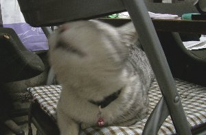 なんだろう? ↓パイプ椅子の背もたれのとこにずっと頭を擦りつけてる・・・かゆいのか?でもノミはおらんし・・・なんだろう?
