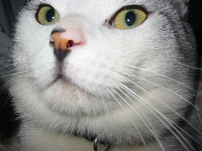 いろいろコメントありがとうございました。さらに大きい顔のネコさん、待ってます。でも体重はそんなにないんです。 多分4~5kgくらい。ちなみに縦は・・・うまく測れん・・・(さすがに嫌がったタマ。)ちょっと下向き加減ですが11cm くらいでした。
