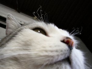 実はタマ、年令不詳です。よくわかりません。ココに来たときにはすでに大きかったです。以前、獣医に診てもらったとき、何げに聞いてみました。j 「タマって何歳くらいですかねぇ?」医 「うーん、3歳くらいじゃないですか?」j 「えっ、でもタマがウチにきてもう3年ですよ。」医 「!???」猫の年令ってどこでわかるんでしょう?知ってる方、教えてください。 何歳にみえるでしょうか?