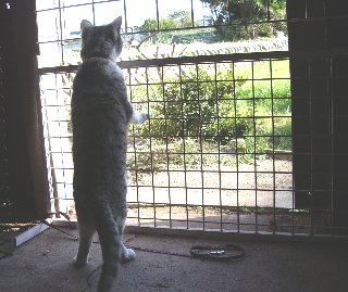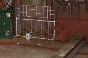 クララが立ったー!でなくてタマが立ったー!なんて思ったら、そうでなくて、 ↓なんと下からヤツが覗いてました。よく来るなぁ。。。一体どこのネコだろう。まだこっち見てるよ・・・