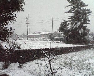 午前中は、こ~んな感じで天気よかったのにさ・・・夕方になったら、(ちょっとわかりにくいが吹雪いてる。)雪かよっ!・・・ってマジでもう3月も半ばだというのに。。。