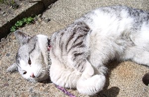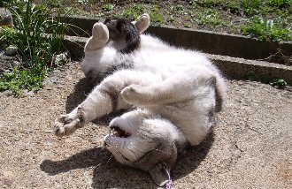 天気がいい日はココにかぎりますなぁ・・・と言わんばかりに今日も寝転がるタマ。そうかそうか、気持ちイイか。。。タマの場合は、小さいスペースながらも日光を浴びて寝転がれる所があります。 少しでも外に出て日の光を浴びると気持ちがいいようです。タタミ1畳もない所だけどタマにとってココは最高の場所のようです。こういう場所があるって、やっぱ幸せなのかな・・・ネコってなかなか外に出せれないもんね。