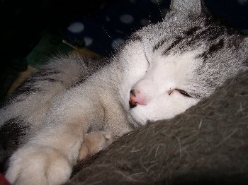 午前中の作業を終え、ふと一服でもしようかな~、なんて思ったら、 ↓ お~いタマ、それはボクの椅子なんですが・・・・・・ってぐっすりかよ!まぁしゃ~ないわ。 寝とってくれ