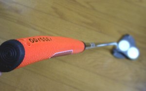 パター変えて見ました。っといってもグリップをだけど・・・だってさ、みんなおんなじ2ボールパターなんだもん…オデッセイから新作でカラーグリップが出たから買ってみました。色は迷ったんだけど・・・オレンジっス。 ↓さらに「アルバ」見てたら、「ネオマレット系は手元が重いほうがいい。」なんて書いてあったので、グリップ内部に鉛テープをべた~っと貼ってやりました。それはもうタップリと貼ってやりましたよ・・・約25g。(貼りすぎ?)(バランス超軽! C0!)でもね、それでも総重量は530gいかなかった。。。ストロークしてみると、確かに前より「始動」がスムーズになったような、ぶれる感じがなくなったような…う~ん・・・かなりいい感じ♪見た目も超派手~になったし、気分一新だな。練習も行けてないからこんなことで発散してます。はぁ~・・・ラウンド行きたい。。。
