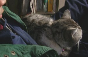 朝から雨でしたからねェ。。。久々に寒かったんでしょう。パソの前に座るとすぐ・・・ ↓膝に乗ってきました。そしてすぐさまこの表情おかげで仕事が遅れました(まぁ、たまにはいいか・・・)