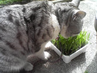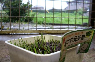 「ネコの草」も食べ頃になったようで、よく食べるようになりました・・・と思った矢先に・・・もう飽きたのか?根がまだしっかり張ってないから食いにくいのかなぁ・・・
