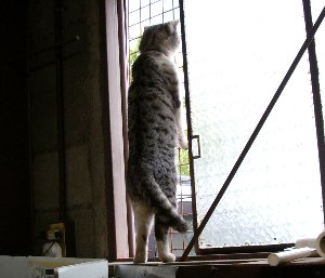 仕事中に・・・後ろからついてきます。(あぶね~ぞ、タマ)何か欲しいんだろうか・・・ 背後から突然、・・・!・・・と出てくることもあるのでビックリです 遊んでほしいのか?う~ん、なかなか考えとることがわからん・・・(ミャウリンガル買おうかな?)