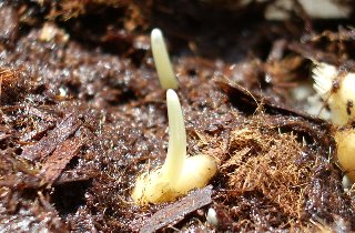 芽が出てきました。(長かったな…)これであとは土を乾かさないように水をやりながら、太陽に当てて育つのを待つだけです。 (舌を出して待つタマ。)タマ、まだ早いっつーの。