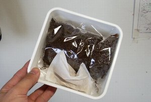 まさかまさかの「寒の戻り」も過ぎたので、先日買った「ネコの草」を作ることに。。。中身はこんなかんじ。土と種が入ってます。まず土を全体に敷き詰めて・・・その上に種を撒き・・・土を被せて軽く押さえる。全体が湿るように水をやったら・・・蓋をして3分・・・じゃなくて、発芽するまでこのままおいとく。3~6日で発芽するそうです。…で、芽が出たら、日あたりの良い場所に置いて時々水をあげると、一週間ほどで10cmくらい(食べ頃。)になるそうです。タマ、もうちょっと待っとって