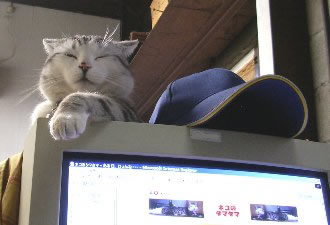 ココ最近雨が多いのでちょっと寒いようです。 ↓CRTモニターの上で気持ち良さそうにしてます。ホントは液晶モニタにしたいんだけど、そうするとタマの「暖房器具」がなくなっちゃうか。ちょっと暗いけどまだ使えるし、当分これでガマンやな。。。