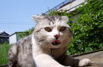 九州の方じゃもう梅雨入りらしいですね。ホント、天気よくなんないッス。この前はせっかく晴れたのに写真を撮るのを忘れたので、今日は曇りだけど忘れずに、パチリ(エエ顔しとるなぁ~)・・・と撮ってたら突然タマが、 ↓(しまった! ちょっとズレた…)・・・と突然立ち上がった~!せっかくタマがカメラサービスしてくれたのにさ…失敗