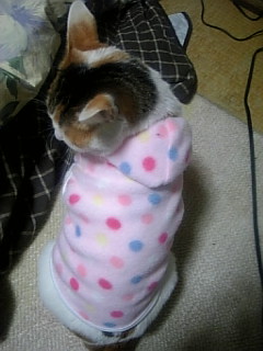 今日は午後から出勤の5時間勤務です(≧▽≦)b今朝は久々にモカつん登場!!百円ショップで見つけた、小型犬用のお洋服を着せてみたなりよ(〃▽〃)この後めっちゃ嫌がって自分で脱いでたけどね(笑)