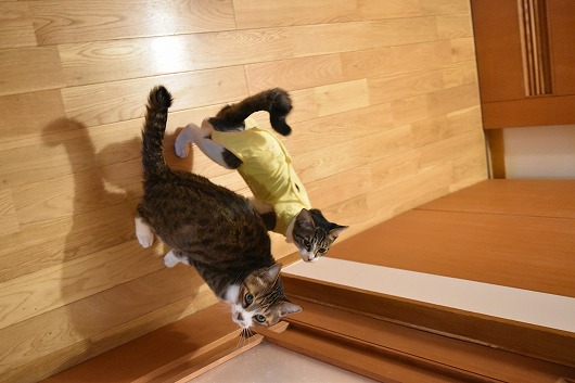今日の最高気温は8.9℃。少し気温は下がったけど、2月下旬並みの気温。暖かかった今週は、なんだか疲れました…😫💦春の陽気だったせいか、眠くてたまらなくて、時間帯によっては、しんどかったりしていました😣💦寝る時間も、頑張っていつもより少し早く寝ていたんですが、それでも、いつも以上の寝不足感でした。久しぶりに顔には吹き出物だらけです(寝不足になると吹き出物が出てくるんです)にゃんこたちのお外は、昨日も今日も、七ちゃん、心子ちゃん、お外に出ました~。七ちゃんと心子ちゃん、同じところへ行くならいいんだけど、それぞれ違うところに行かれると、大変です💦💦今日は、七ちゃんは、道路前の辺り。心子ちゃんはカーポートの中の私の🚗の横に。ここはまだ近いからいいんだけど、そのうち、心子ちゃんが周りの様子に、ちょっとパニックになって、リードを引っ張りますそうこうしてるうちに、七ちゃんはいつのまにか、お庭の通路を通って、物干し場へ行っていて、あれ私の手には、1つのリードしかなくて、見ると、ビックリ七ちゃんの方のリードが手から離れていました七ちゃんも、若かったら、どこかへ走って行ってたかもですが、歳を取ったのね・・・。おっと~りと、いつもの所で匂いを嗅いでいました(^^;そのうち、また心子ちゃんがパニックになったので、周りを見ると、お向かいさんがワンちゃんを外に出していました。しかもまた、リードなしです心子ちゃんは、このワンちゃんを初めて見るんだと思います。なので、心子ちゃんを抱っこして、七ちゃんのところへ行きました。そしたら、目の前で、よそのおうちでオシッコしてるじゃないですか 飼主さん、ちゃんと見てるんですよ?このワンちゃん、もしもうちの方にでもやってきたら、それこそどうなるかと思うと怖いです😰それでも、ず~~っと昔から、こうやって家の前では、リードなしで放してるんです・・・😖今日は午前中は、日が射していました。リビングでは、クッキーちゃんと未由ちゃんが椅子の上でくっついて寝ていました~。ほのぼのしますね~お昼、遅くに昼食を食べて、パソコンで勉強していると、心子ちゃんが、どこかで「ニャーニャー」鳴いてて。これって、自分が閉じ込められたか、誰かが閉じ込められたかの声だな~と思って、声のする方へと見に行くと、玄関から、家の中へ入れないでいる旦那👨がいました(^^;人がいない時は、猫の脱出防止で、引戸につっぱり棒をしてるんです(^^;旦那👨は今日は一日仕事だったはずなんだけど、午前中だけで、午後からは帰って来てもいいようになったみたいで、お昼に帰って来たみたいです。で、つっかえ棒を外して、家の中へ入ってもらうことができました。いや~~、旦那が家に入って来れないっていうのを、心子ちゃんが鳴いて、私に教えてくれるなんて、なんてお利口さんなんだろうって、二人して、驚いて感心していました。おかげで、午後の買い物は、旦那と一緒に行くことができました~。今日、25日は、心子ちゃんの術後服を脱がせる日です。術後服も可愛いし、脱がせるのも不安なので、以前から、夜に脱がせるようにしています。夜、マジックテープを外すと、完全に脱いでいないのに、もう歩き回っていました(^^;それから、つかまえて、脱がせてあげると、一生懸命、身体中を、グルーミングしていました。服の下、ずっと気になって、舐めたかったのね。あと、傷口も気になって舐めていました。グルーミング中は大人しかったのですが、それが終わると・・・・まあ~~~~活発に走り回るわ、未由ちゃんと取っ組み合いするわで、めっちゃめちゃ元気に動き回っていますちょっと撮れたのが、大黒柱に登ってたところ。すっごいパワーで、ドタバタと家の中を走り回るようになってビックリです~洋服で、かなり動くのも抑制されてたのね(^^;にゃんこは洋服、好きじゃないものね…。これは、もう、大丈夫ですね~。抜糸は31日の予定になっています。ちなみに、心子ちゃんは生後7ヶ月で避妊手術を受けましたが、今までのにゃんこの中では、一番早くに受けました。にゃんこの成長って、めっちゃめちゃ速いですね…。だって、1年前の1月って、まだ宇宙ちゃんがいたんですから…。宇宙ちゃんが生きてたら、心子ちゃんは来ることはなかったです。7月に心子ちゃんを迎え入れて、そしてもう避妊手術だなんて、早いです!! 最近、夜になると、起きていられなくて、うたた寝してしまうことがありました。うたた寝を我慢してると、遅くまで起きてるのが辛くなります…。いつもと全然、身体が違います…。旦那も同じようです…。皆様は、急に春の陽気になってたことで、身体の変化などありましたでしょうか日曜は、しんどいのを解消することに専念しようと思います。いつもながら、ブログ訪問コメントに支障ありましたら、ごめんなさい💦ベルーナやユニクロ、DHCやファンケルをここから買うと、 楽天ポイントが付きます~。