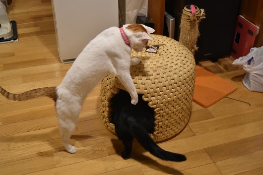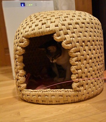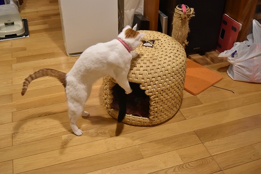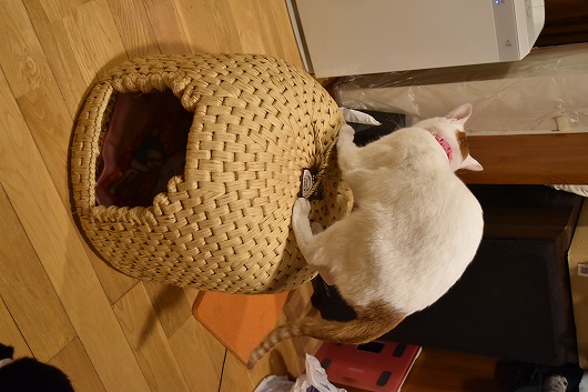 うちに置くなり、すぐ猫たちが寄ってきました。