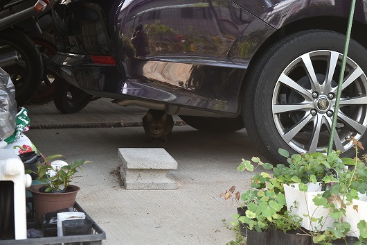 車の下に。