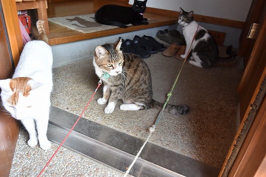 外に出る時、 七ちゃん は、首輪に リード をつけて、出ていますが、