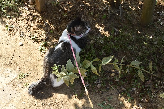 七ちゃんのお古の首輪を付けてあげて、お外に出ているんです。