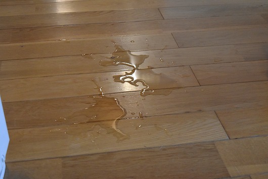 今日は、しっかり床に水がこぼれていました。