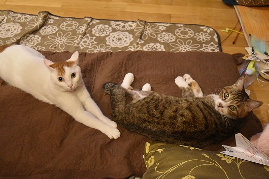 夜になって、くつろいでいた 七ちゃん 未由ちゃん です~。