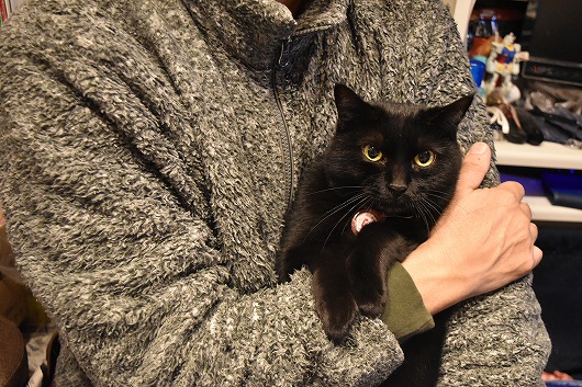 抱っこされるのは大嫌い、膝の上にも乗ってこない。でも、スリスリとママにだけ思いっきり甘えます。匂いに敏感で、ちょっと神経質かな?