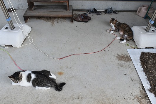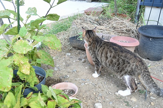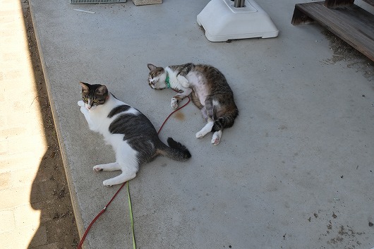 今日の最高気温は35.5℃の猛暑日で晴れ。長い連休明けは、朝が辛いです…😣早めに寝ようとはしたのですが、夜にやること色々あって、なかなか早くに布団に入れません…😖💦前回は、私のめまいのことでのご心配、ありがとうございます(*ᴗˬᴗ)⁾初めて、「良性発作性頭位めまい症」で耳鼻科に行った時、この病のことが書かれた紙をもらい、「安静にしていなくてはならない」と思い込んで、寝てると、よけいに治らないとのことを言われました。他に病気がないなら、普通に動いて、頭を積極的に動かすと、めまいは早く治ると書いてありました。このめまいは、ぐ~~~るぐる回るようなめまいなので、起きあがってすぐ立って歩こうとすると、真っ直歩けません💦寝てる時にトイレに行こうと思った時が一番やっかいです(^^;下手すると、転倒しちゃいます。最近は、少し眩暈が軽くなってきたので、もう少しで治るんじゃないかな、と思っています(^^;朝のにゃんこ😺のお外。心子ちゃんは、いろんなものに興味を示して、好きなところへ行っちゃいます。この時は、虫を見つけて追いかけていました。でも、リードをひっぱりすぎると、喉が苦しくなって、咳きこみます。それでわかったのか、リードを無視して、行きたいところがあっても、ムリに前進をしなくなりつつあります。七ちゃんは、草探しです(^^;この前、何日も連続で雨が降ったときに伸びた草。七ちゃんが食べようとすると、すぐ阻止しますそして、私は、七ちゃんの行動範囲をせっせと草むしり💦そしたら、そのむしった草を食べようとしていました(^^;なので、もっと七ちゃんの届かない所に草を起きました。しばらくして、玄関に戻ってもらうことに。ちゃんと2にゃんそろって、行ってくれるのは助かります~。玄関を開けると、クッキーちゃんと未由ちゃんがいました~。なんか、この2にゃん、よく同じ格好してますよね。遅れて、七ちゃんも入ってきました。お庭では、薔薇がちらほらと咲いていますが、春のバラとは全然違います…。アイスバーグ、いくつか咲いていますが、こんなお花です。ストロベリーアイスも、いくつも咲いていますが、春のような、透明感のあるピンク色ではありません。なんか、「アイス」の名がつくバラ、うちに3つありますね(^^ゞそして、このペチュニア。これ、1本の苗です。去年買ったペチュニアですが、ものすごくこんもりと咲いてくれるんです。しかも、挿し木も簡単です。なので、うちには2か所置いてあり、実家にも、夏に植え付けてきましたが、あっという間に、花の数が増えてきて、成長も早いみたいです。来年も、これを冬越しさせたいです。家の裏に植えてあるミョウガは、今年はひどい不作です。これで、今年4個めです。株が増えると、収穫も増えていいはずなのに、たぶん、梅雨に雨が降らなかったからかもしれません。もし来年も雨不足だったら、水やりをしてみようと思います。最近、うちのにゃんこで、おトイレの使い方が下手な子がいて、たまに失敗があります。先週は、大きい方が、トイレの外にはみ出てありました。そこに、心子ちゃんがやってきて、おトイレをしていました~。心子ちゃんは、ちゃんとお尻まで、トイレの中に入ってます。こうやって、はみ出しちゃう子は、お尻がはみ出て、用を足しちゃう子なんですね(^^;人間でも、和式トイレの時、後ろに汚れてるの、見たことありませんか?そんな感じで、もっと前に出なきゃならないのに、お尻が、トイレに入ってないんです(^^;大きい方なら、一目で見てわかりますが、小さい方は、わかりにくいです。でも、確実に、そういう失敗があることがわかってから、写真のように、ペットシーツを敷くようになりました。そして、今日。オシッコが、はみ出てやった形跡がありました(^^;これ、どの子なのか、私も旦那も目撃したのでわかっています(^^;猫に、トイレのしつけなんて、したことありません。みんな、本能でちゃんとしてくれるので。さて、この子、今後はどうしましょう(^^;猫にしつけなんて、無理っぽいので、人間が知恵をしぼって、対策するしかないのかな(^^;夜、また、クッキーちゃんと未由ちゃんが、同じ格好で、シンクロして座っていましたよ~。クッキーちゃん、可愛く撮れてるかな?さて、明日は私も休み明けで忙しくなりそうです。パソコン作業がうまくできれば、時間が作れるはずなのですが… 訪問コメント、応援クリックありがとうございますm(_ _"m)とっても励みになっております(o*。_。)oペコッ2つのブログランキングに参加しています。お手数ですが、上と下の写真をポチっとお願いしますm(__)mにほんブログ村こちらもお願いしますm(_ _"m)猫との暮らしランキング