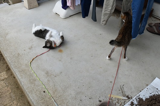今日の最高気温は17.4℃。雨が降ったり止んだりのお天気でした。昨日、旦那が休みだったので、2連休でした。こういう日の日曜日は、かなり身体も回復します。食事の後、少しゆっくりとパソコンをしていると、心子ちゃんが、「にゃ~」と。そういえば、お外に行ってなかったな、と思って、心子ちゃんと玄関に向かうと、七ちゃんも急いで玄関にやってきました~。ちょうど雨の止み間でした。七ちゃん、今日はすぐ通路の方へ行ってくれたんだけど、なんとまぁ通路でゴロンしていましたよ~心子ちゃんが、七ちゃんの方へ向かおうとしています~。この後は、七ちゃん、ちゃんと物干し場へ行きました~。それに、昨日のお外では、七ちゃんと心子ちゃん、同時にごろんごろん~という、初めてのシーンが見れましたなんとも微笑ましいです~私の顔も、ほころんでいました~その後は、七ちゃんは、葉っぱを探し回っていると、リードが巻きついちゃって、動けなくなっていました(^^;お庭では、ようやくシュウメイギクが咲きました。2つあったのに、1つは枯れちゃいました。今の鉢植えは、鉢いっぱいに根っこが張ってるようで、花の数も少ないみたいです。今日も、夕方には近所に、旦那と買い物に行ったのですが、車を走らせて1~2分後に、私がスマホを忘れてきたことに気が付いて、家に戻ることになりました…😓本当に、スマホを忘れることが多いです…家を出る前に思い出すのことは、しょっちゅうで、ごくたまに、今回のように、一度出てから、引き返して戻ることもあります…😖ほんとに、よく忘れ物をするし、もの覚えも悪かったりで、典型的な、「頭が悪い」という人間ですよね・・・。理解力も、ほんとに全然ですし…😓自分やイヤになること多々あります…😖今は、明日のことで、忘れないようにすること、今日は何回も、頭に思い描いて繰り返していました…。もちろん、メモもしてあります。それと、昨日の夜に漢方薬を煎じていて、思い出したことがあります。以前、胃の調子が悪いことを、和漢の先生に言うと、一つ、生薬を減らされたことを思い出しました。その生薬は、K先生が、もとの漢方薬にプラスして加えてくれてた生薬の一つです。わざわざ、私の体質に合わせて加えてくれていた物です。胃に負担がかかるからかも、と、取り除かれたけど、そのまんまになっていました。今度は、また、元に戻して、加えてくれるようにしてもらおうと思います。もしかして、それで、足の調子も変わるかもしれないし。最後に、旦那に抱っこされてるクッキーちゃんです。可愛かったから、カメラで撮ったのですが、タイミングがちょっと遅かったかな…。目で見た時ほどの、可愛らしさが出てなくてごめんね、クッキーちゃん…。さて、明日から、また、頑張らねばベルーナやユニクロ、DHCやファンケルをここから買うと、 楽天ポイントが付きます~。他にもお店いろいろあります~。訪問コメント、応援クリックありがとうございますm(_ _"m)とっても励みになっております(o*。_。)oペコッ2つのブログランキングに参加しています。お手数ですが、上と下の写真をポチっとお願いしますm(__)mにほんブログ村こちらもお願いしますm(_ _"m)猫との暮らしランキング