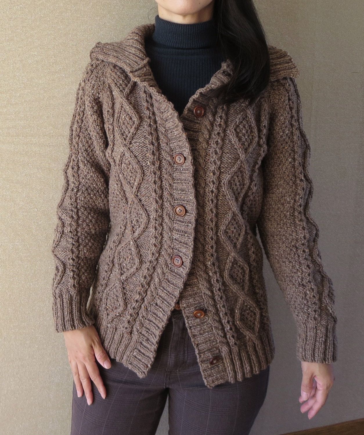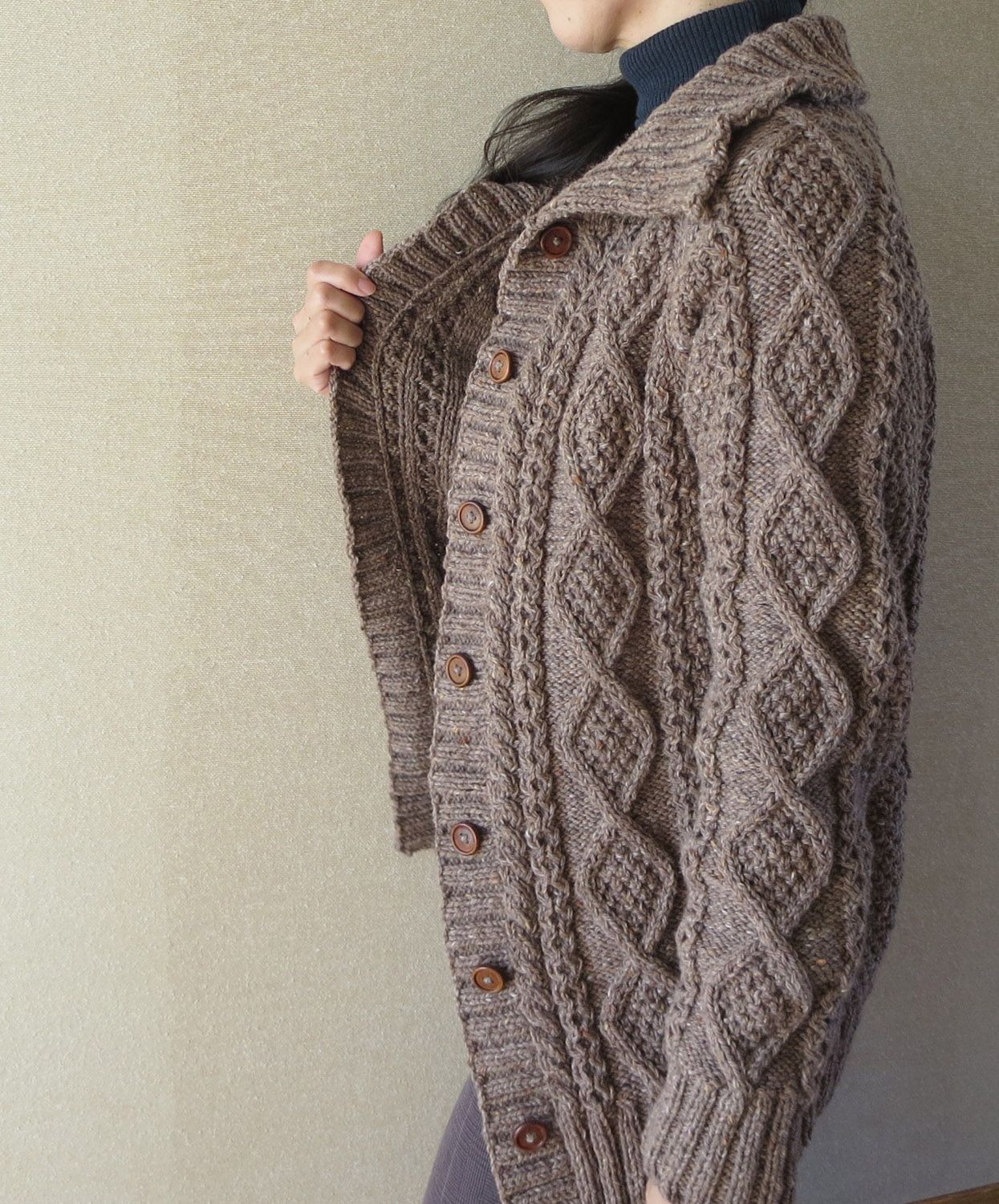 「てあみ時間 おうちニットvol.3」よりアラン模様のカーディガン