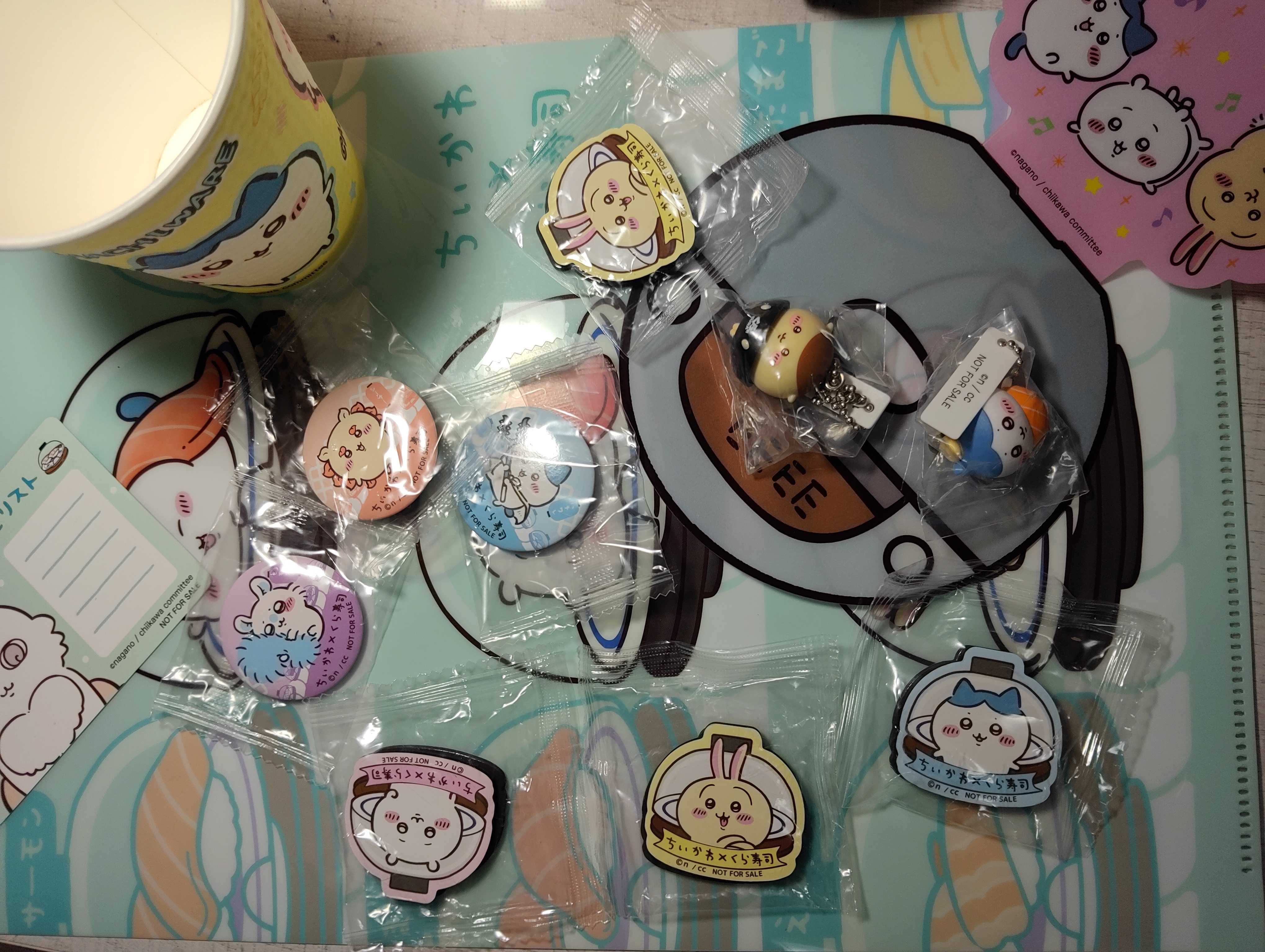 昨日、ちいかわ✕くら寿司行ってきました。夫が予約してくれてたけど、ものすごい混んでいて結構待たされましたー。食べましたー。ビッくらポン付きの大皿を3皿笑後、報酬うどんとお出汁付きのお寿司セット。前回はフィギュアでなかったけど、今回はハチワレとくりまんじゅうをお迎えできました。娘、めちゃくちゃテンションupでしたー。ファイルもまだ全種類選べました。ちいかわ 吸水キャップ < ちいかわ / ハチワレ / うさぎ / モモンガ > chiikawa タオルキャップ ルームウェア ヘアキャップ ふわふわ 女子会 やわらか お風呂 お風呂あがり ギフト プレゼント ホームパーティー お泊り 旅行ナルミヤさんで、いつも履いているKPスパッツ7分丈を3種類130買いました。頂いた1000円クーポン使いました。アフィでません。これの夏用7分丈です。(KP)KP 柄違いプリントスパッツ(80~140)