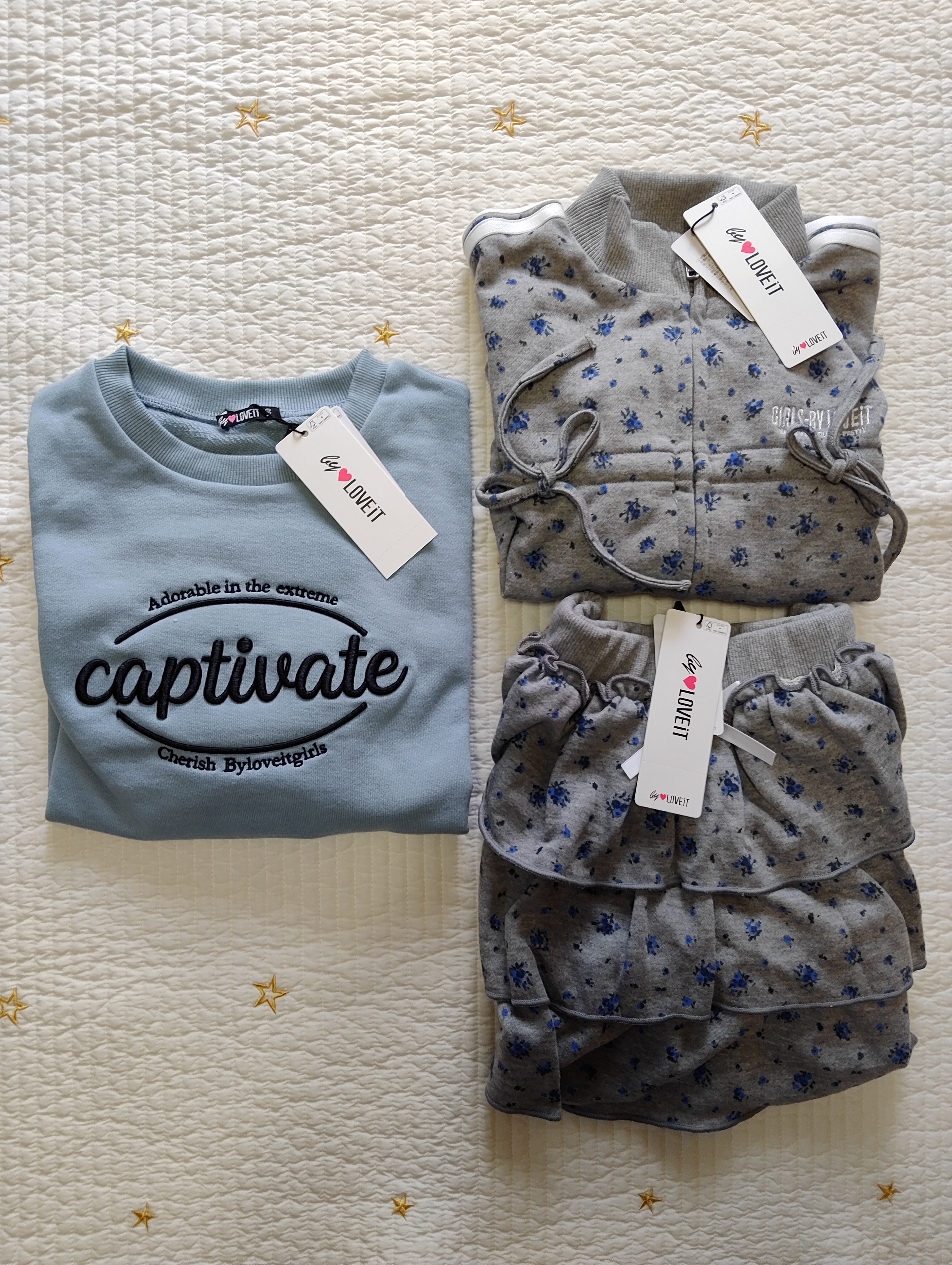 先日ポチポチしたバイラビのお洋服が早速届きました。こちらは130です。140はまだまだ先になるのでしまっておきます。こちらセットアップ!可愛い!!早く着せてみたいです。トレーナーも同包してました。この組み合わせも可愛いです。バイ ラビット(by LOVEiT)胸ドロストZIPバイ ラビット(by LOVEiT)3段フレアスカートバイ ラビット(by LOVEiT)ロゴトレーナー当ブログはアフィリエイト広告を利用してます。