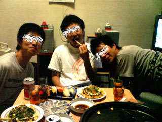 昨日は、同期のメンバー年寄り軍団でお好み焼きパティーを決行!!と、いっても、オイラははっきりいって何もしていない。ただ、ご馳走になるために行っただけである。あっ!オイラだけではなかった。他の二人もそうである。中央の痛い子&右の痛い子も、食べに来ただけだった。このパーティーは左の子が催してくれたものだ。入社式の日に始めて話しかけてくれたのも彼。それがなければ、これほどまで、仲良しではなかったはずである。きっと。出会いとは偶然が偶然が引き起こすものである。これからも、このメンバーとは付き合っていきたいとおもう。みなさん、宜しくね。お味の方は、美味しかったです。さすがKちゃん。料理できる人は違うね。ちなみに、他の3人(左以外)は、全く料理をしません。。。