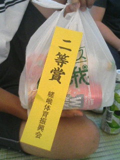今日は、町内の運動会です。 わたしも、出場します。 ゆーちゃんと、父子二人三脚に出るんです。 これは、練習しないと、出来ません。夜にでも、やったらいいんだろうけど、この一週間、出張と、遅くまで会議とかで、家に帰ったら、ゆーちゃんは、もう寝てました。 一度、朝に、たたき起こして5分ほど練習したけど、 ゆーちゃんの身体が寝てるから、練習にならない。。(悲) でも、以前長男と走った時に1位だったんで、ゆーちゃんも期待しています。 土曜の夜に、少し時間が取れたんで、練習しました。 「よし、これならいける!」 朝の10時、本番スタートです。前に走ってる人達を見てると、組み合わせで、バラバラです。 よたよた、よたよた、、で、1位。。 ほぼ走ってるのと変わらんやん、、で、2位。。組み合わせの妙を感じますねー、、うん。。(笑) 競技内容は、、子供をおんぶして、ひもが置いてあるところまで走り、そこでひもを結び、二人三脚でゴールです。 さて、わたし達の相手を見ますと、、 弱そうです。。 ふふ、、これなら、勝てる。。(笑) わたしは、そんな事を思ってたんですが、 ゆーちゃんは、緊張してます。。 「お父さん、、3位までに入ろうな。。」「何言ってるねん、、1位や!」 「お父さん、、おんぶ走り、、はやく走ってや。。」「ヘタに走ってもあかん。。ゆっくりでいいの。。」 もう、、ゆーちゃん緊張しまくり。。(笑) さあ、イヨイヨ、、出番です。。前の組が、ゴールしました。。 まず、しゃがみます。ゆーちゃんを、おんぶします。 立ち上がります。。審判が、、「よーい、、」 いよいよです、、ドキドキ、、ドキドキ。。「パーーン!!」 一斉に走り出しました。もう、ゆーちゃんも重くなったなー。。 ひものところまで、着きました。ゆーちゃんを降ろして、ひもを結びます。クックッと、、ひもを結んで、、「もうすぐやどー、、いくどー。。」「せーの!!」「いちに、いちに、、」 いい調子です。。 このままなら1位か? あれ、隣が、はやい。。メチャメチャ、、はやい。。走ってるみたい。。くっそー、、伏兵だ。。残念ながら、、 わたし、、悔しくて、、悔しくて。。他の組を見てると、、遅い人でも1位になってる。。(泣) でも、ゆーちゃんは、うれしそう。。お父さんと、一生懸命に、やった事が、うれしいみたい。 そうだよね、、あまり練習は出来なかったけど、、練習どおりにキッチリ出来たもんね。。 長男君の障害物競走は、、 みーちゃんとお母さんの、母子二人三脚は、なんと、なんと、、挑戦、3回目にして、、 これには、みーちゃんよりも、、お母さんが、大喜び。。(笑) 「やったー、、練習の成果が出たー!!」その後、綱引きでも、、 あまり、天気は良くなかったけど、、賞品を一杯もらって、、一家仲良く、、大喜びの一日でした。。 でもね、、 子供達の、、携帯ゲーム機。。 何とか、なんないんでしょうかね? 前で走ってる町内の人を応援するほうが、 面白いと思うんだけど。。(悲) 親が、教えてやらないと、、直らないぞ。。 今日の日記は、、どうでした? 人気ブログランキングをしてるんです。応援してやろうという、心の優しいあなた、、下の緑のボタンをクリックして、ね♪1日1度のクリックで、いいんです。 それで、わたし、、癒されます。。(笑) 今、5位でした。 この順位が決まるのは、皆さんの、ポチだけです。。(願) 本当に、、ポチしていただき、ありがとーーう!! これ、マジ、、スゴイッす。。(笑)わたしのお薦め本です、見てね♪ この会社って、、何してるの?うちの会社の行事です、、見てね♪ アッと、驚いてみます? (笑)わたしのお薦め商品です、見てね♪ うちのメンバーのコメントも。。(謝)メンバー紹介です、、見てね♪ わたしの日記が、載ってます。。(驚) お待たせしました。。(笑) 「斎藤一人さんのコーナー」 続きまして、柴村恵美子さんです。そこそこのお年だろうけど、、多分50? そんなの、、全く見えない、、すごく、、若い、キレイ、かっこいい。。(笑) 一人さんとの出会いは、専門学校生のときです。多分、25歳の一人さん、18歳の恵美子さん。。初めて出会ったときに、こう言われました。「あなたとは、長いお付き合いになりますねー。。」 「へーー、、初めて会ったのに、、何でですか?」「だって、、前世からの宿命だから。。」 「・・・・・・」 まあ、、 事実、それからの長い付き合いが、始まったそうですけど。。(笑) このクダリは、この本にも書かれてます。 わたし? もちろん持ってます。。 あー、、ツイテル、ツイテル、ツイテル。。 今日の日記も、最後まで、お読みいただき、感謝しています。本当に、ありがとうございます。 今日も1日、 あなたに、全ての良き事が、雪崩の如く、起きます!