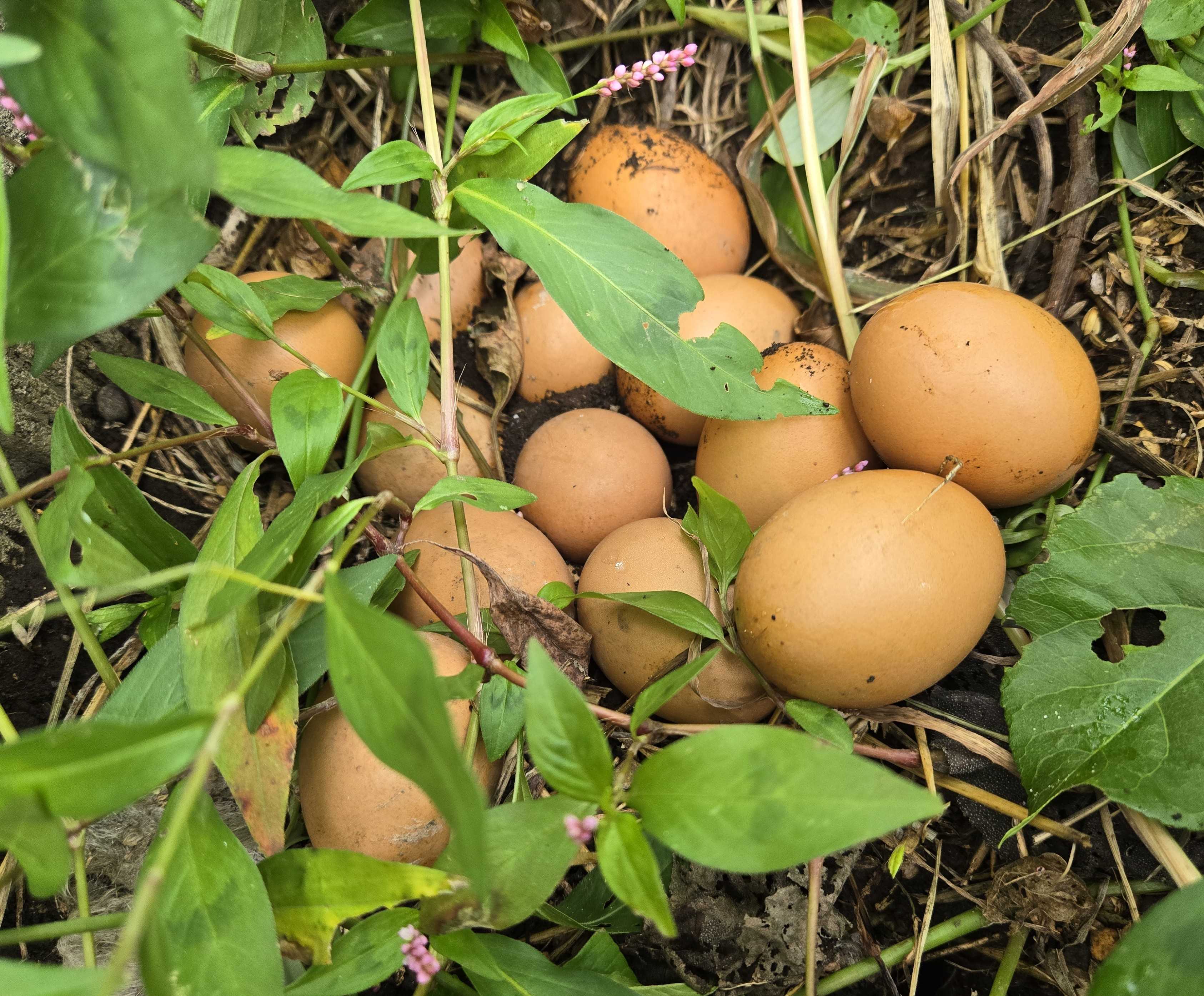 合鴨のキイちゃんのスペースを敷地の家寄りの方にずらしました。家禽は同じ場所にいると地面を掘り返すし排泄物が溜まったりするので時々囲っている範囲をずらすことで元いた地面は掘り返された上に堆肥がまぶしてあるようなものでとても土の状態が良lくなります。場所の移動に伴って鶏スペースも少し変更したら・・・思いがけない茂みから多分ココちゃんの卵が13個も産んでありました!そこは何度も見た場所だけど見つかられなかったのね・・・数日間、見つけられないまま数週間経ってしまった卵は流石に腐っているのもあって全部廃棄しなくてはなりませんでした、ああ、もったいないことした・・・にほんブログ村にほんブログ村