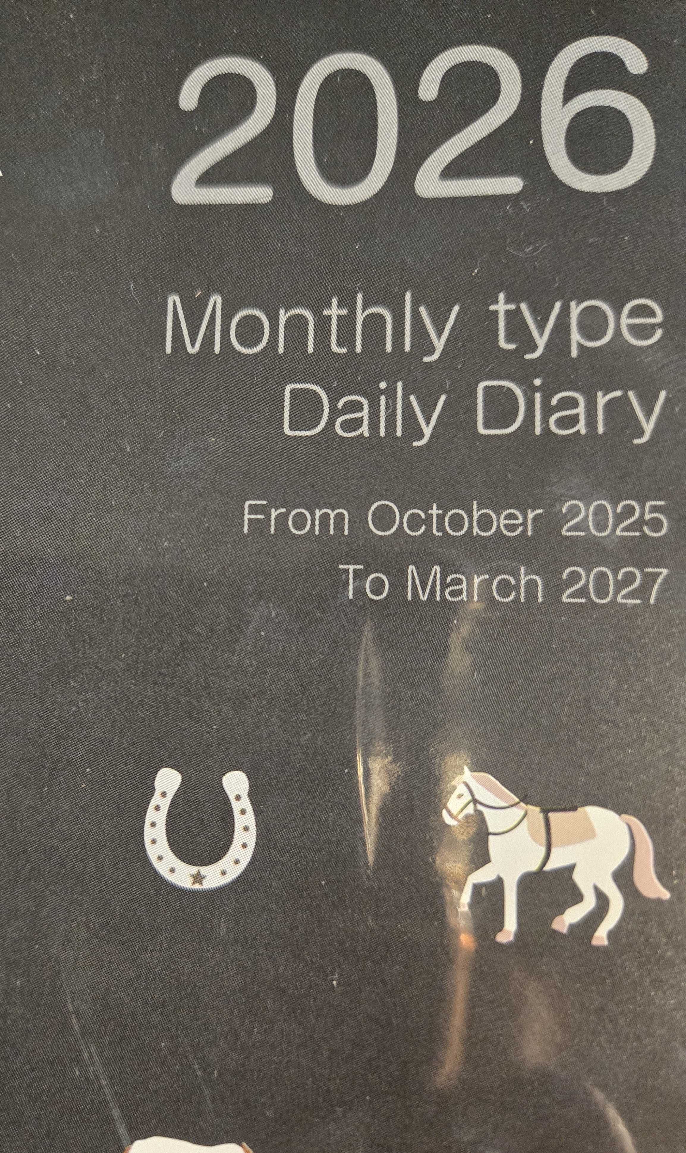 ホームセンターで買い物中ふと目に止まった来年用の手帳コーナー来年が午年なのでウマの表紙のものが数点!一つ、買っちゃいました。来年が楽しみ!【10%OFFクーポン】デルフォニックス 2026年手帳 ロルバーン ノートダイアリー ポニー A5 干支 馬 ライトイエロー メーカー品番160084-205【2026年手帳/2026年1月始まり】スケジュール帳 ダイアリー 週間 月曜始まりB6ウィークリーブロック ダーラナホース(グリーン/ホワイト/グレー)《おしゃれ/大人/かわいい/可愛い/ライフログ/どうぶつ柄/ウマ/うま/馬/干支/午》【ラボクリップ】2026年 手帳 デルフォニックス ロルバーン 月間 B6 変形Lサイズ 馬 干支 マンスリー ダイアリー DELFONICS Rollbahn 翌日配送対応【10%OFFクーポン】デルフォニックス 2026年手帳 ロルバーンダイアリー ポニー 横型 L 干支 馬 グリーン DELFONICS メーカー品番160063-284にほんブログ村