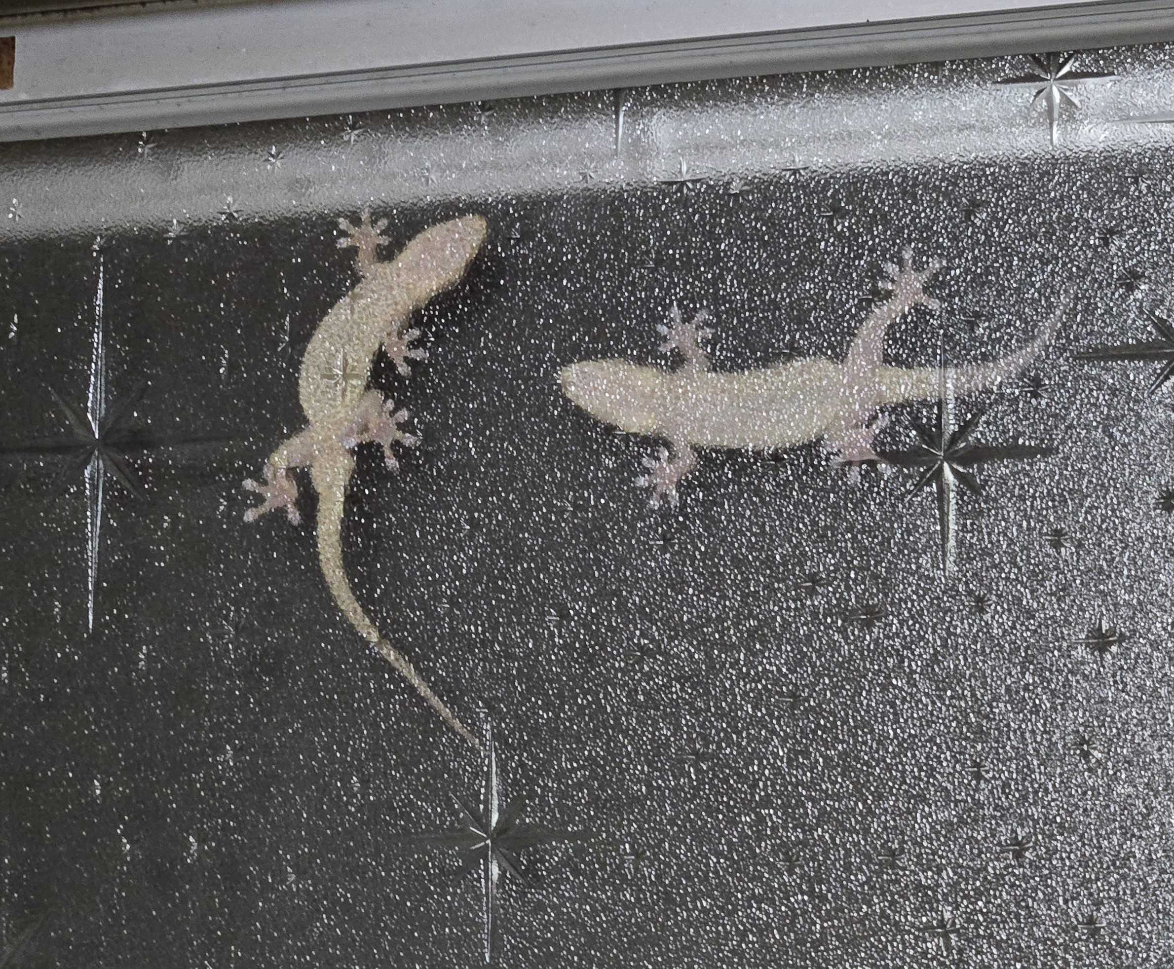 暗くなるのが早くなりました。明かりをつけて一時間ほどしたころまるこちゃんが獲物を見つけた声をあげガラスにぶつかる音が聞こえたので何事かと駆けつけると..ヤモリが!!初めて見ました!しかも2匹も!!!いやぁ庭に昆虫ならいっぱいいるもんね。頑張ってたくさん食べて下さい。にほんブログ村