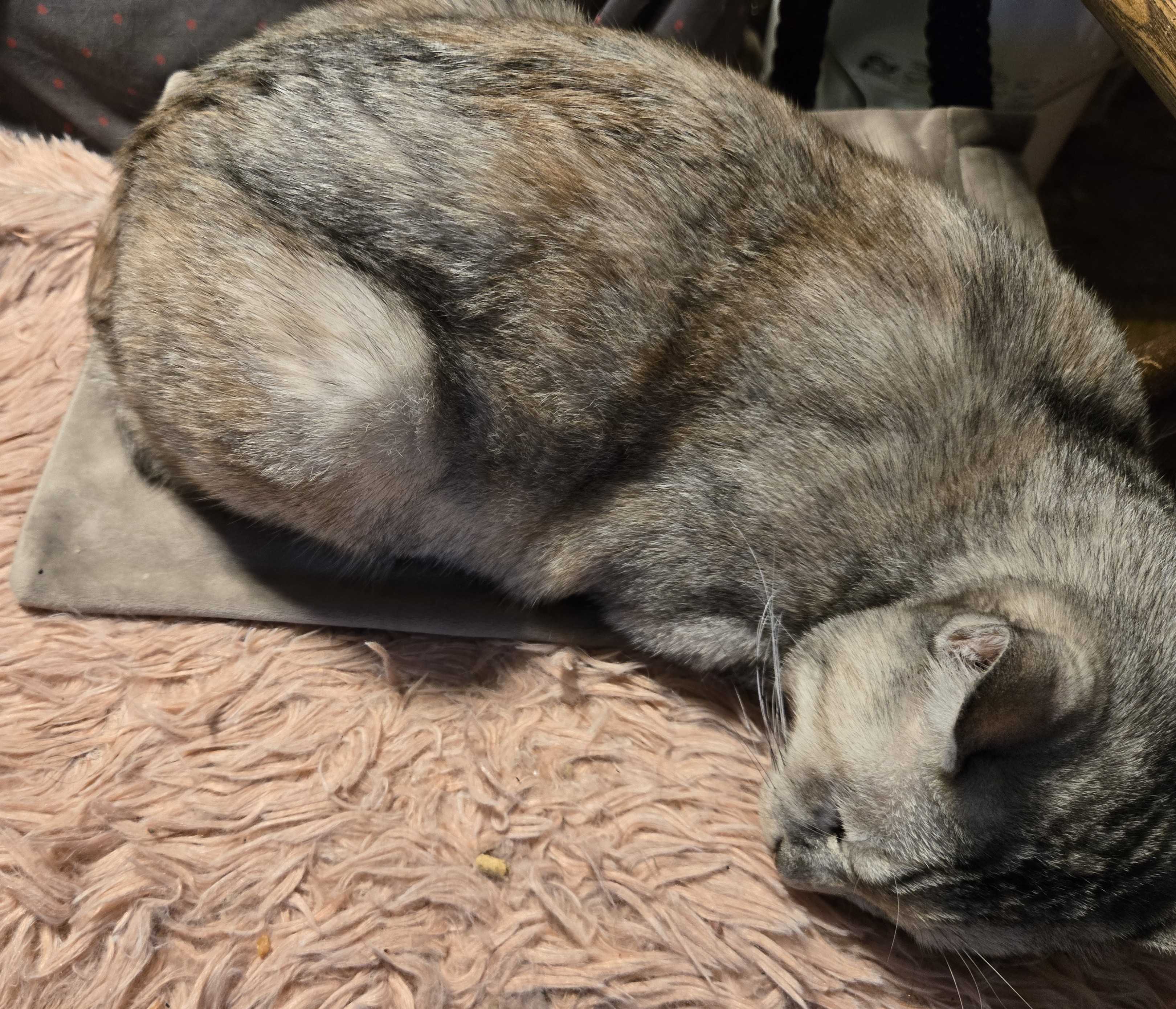 昨年10月に保護した猫。立ち耳スコティッシュ??と思える容貌からすーこさんと呼んでいた彼女は未明に虹の向こうへ旅立ちました。昨夜様子を見に行った時はもう逝ってしまったか?と思ったらかすかに顔をあげてにゃーと言ってくれて多分あれが別れの言葉だったのでしょう。(保護する直前のすーこさん)隔離生活だったけど寂しいよりのんびりマイペースで過ごせていたような気がします。春、暖かな日差しが気持ちいいかなと汚してしまった床を掃除する間庭にサークルを出してケージから出て歩けるようにしてもいつも芝生の上より自分のケージに戻ってしまって中で日向ぼっこしてましたっけ。多分耳が聞こえず目も見えてなかった彼女にとって安心できる場所がケージだったのでしょう。白血病陽性の結果はあったものの保護時の検査でも特に異常はなくほぼ天寿と言っていい年だったはず。静かに送り出せてよかったと思います。にほんブログ村