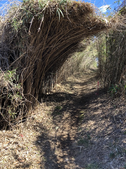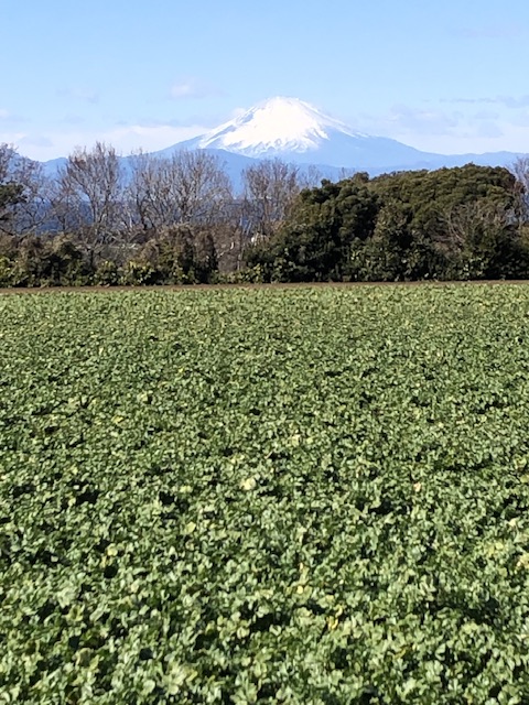今度は作られたさっきの道と違う自然に近い山道の階段を一気に登る。息も絶え絶えになった頃。急に開けて大根畑。振り向けば富士。