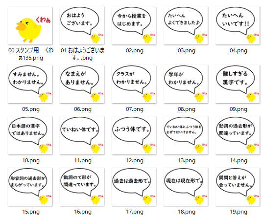 ぴよが求める「日本語教師用LINEスタンプ」はありませんでした。
