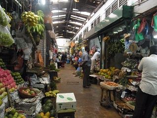 2階建てのビルになっていて、1階は果物やスパイス、魚や肉、野菜などの食料品が並んでいる。