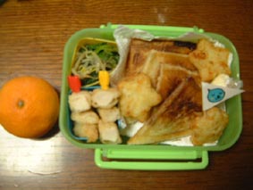 1月31日に作ったのはホットサンド弁当です。義父からホットサンドメーカーをいただいたので試しに作ってみたところななんが大喜び!今までトマトが苦手でなかなか食べてくれなかったのですが「おいしい!トマト食べられるよ!」と、パクパク食べてくれました。温かいトマトだったら食べられるのかな?よっぽど気に入ったのか「お弁当もホットサンドがいい!」というので作ったホットサンドの中身は・・・・チョコクリーム+バナナ・ハム+チーズ+トマトおかずは ・ほうれんそうともやしのおひたし・ささみのフリッター・おほしさまのポテト・キャンディチーズ あまりにも色が地味なのでQOOの旗をつけました。(それでも地味ですね・・・)このときは5枚切りの食パンをスライスして作りましたが8枚、10枚切りの食パンが特売になったら買って作ってみよう。