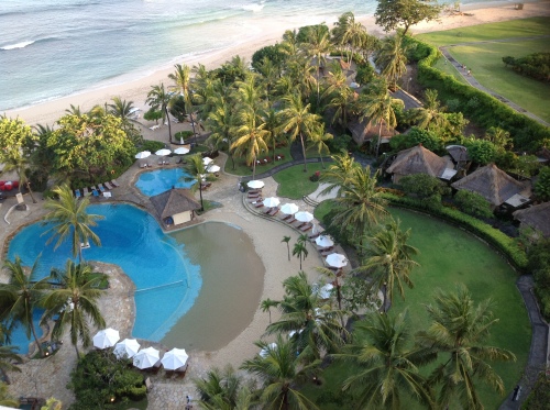 バリ島2日目 2.ニュークタゴルフ ホテルより約30分の所にあるゴルフ場でPGAツアーが開催されたゴルフ場です。 コースはフラットですが、ニルワナよりはややタイトでグリーンが重たく感じました。シーサイドホールは少な目でしたが、やはり天国に一番近い島バリのゴルフ場で15番からの3ホールの景観は素晴らしかったです。サーフィンをしている海を見ながらのラウンドも良かったですよ~。 料金は110万ルピア+キャディーチップ10万ルピア=120万ルピアでニルワナよりかなり安く済みました。条件は同じです。 最後にニッコーバリの部屋のバルコニーからの景観です。 サークルの皆さんと海外遠征もご一緒できたら良いな~と感じたcherryでした。 さすがはクマ族 やるよのぉ〜 しかし あらいぐまはタイで 同じ くま でも私は も乗ったことないねんけど。。。。