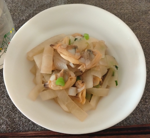 大根が安くなるとアキダイの社長さんが語っていたはずですが、未だに安くなる気配がありません。どういうことなのかねえ。ぼくは、安くない野菜には手を出さないと決めているので、今年は買うことができていない野菜が数多くあります。ブロッコリーにカリフラワー、せり、春菊、トマトなんかは買って食べたって記憶がないなあ。ズッキーニにしろ長ねぎにしろ香菜にしても何度か安価で出回った際に食べたような気もするけれど、明らかに昨年までとは状況が違ってきています。スーパーでもそうですが、特にデパ地下なんかで買い物をしていると、明らかにその食材の底値と比べると割高感のあるものを平気にカゴに入れている人を見ると、ひたすらすごいなあって驚かされるのです。ぼくは具体的には語れぬけれど、まあそれなりの給料をもらっていると思っているし、借金もないのに町を行き交うほとんどの人たちの方が豊かな生活を送っているような気がするのです。酒場巡りも近頃は低調気味だし、欲しいものもあまりないから浪費することもあまりありません。それなのになぜか将来に向けての貯金も十分に貯まっていないのです。どうしてだろう。考えられるのはまず、自分の給料が思った程は良くないってこともしくはデパ地下浪費形は投資などで給与収入以外の結構な稼ぎがあるってこと。または浪費を厭わぬ人たちは将来の安心よりも今を大事にしているってこと。またまた一点豪華主義を貫いて、食材以外にはお金を掛けないってこと(酒は無駄!)。例えばそんな理由もあるかもしれないけれど、せめて普段使いの野菜くらいは気兼ねすることなく好きなものを旬の時期に食べられるようになりたいなあ。あさり大根【材料】アサリ(砂抜き) 40個/大根(拍子木切り/葉:4cm幅) 4cm/醤油(薄口) 小さじ1/2/酒 大さじ1/水 大さじ3/一味唐辛子 適宜【作り方】1. 鍋にアサリ、酒を入れて蓋をし、中火で蒸す。取り出して殻を外す。アサリ(汁)、大根、醤油(薄口)、水を入れて弱火で3分煮る。アサリ(身)を加えて20分置く。器に盛って一味唐辛子を散らす。 定評のある池波正太郎著『食卓の情景』から。池波氏の料理って余計なものを削ぎ落したような潔さがカッコいいのだけど、食べてみると淡泊っていうかちょっと物足りなかったりするんだよねえ。これが旨味調味料に毒されているってことなのかなあ。あさり大根そば ちょっと余ったのでそばにのせてみました。感想はむしろこっちが美味しいかな。大根のバター煮【材料】大根(拍子木切り/下茹で) 10cm/バター 20g/塩 2g/水 300ml/パセリ 適宜【作り方】1. 鍋にバターを熱して大根を炒め、水を加えて弱火で30分煮る。塩、胡椒を加える。器に盛っってパセリを散らす。レシピサイト ぷちぐる https://oisiso.com/ いかにも美味しいんじゃないかと思えるのですが、これまたちょっと物足りない。大根ってのは、本質的に枯淡な味わいに風雅を感じるべき食材なのかもしれないなあ。大根の皮のきんぴら【材料】大根(皮)・ごま油・赤唐辛子(砕く)・砂糖・みりん・醤油・ごま(白) 適宜【作り方】1. 鍋にごま油を熱して赤唐辛子、大根を炒め、砂糖、みりん、醤油を加えて煮詰める。ごまを散らす。 だからむしろこれ位、貧乏臭い方が美味しかったりするんですね。大根葉を好む人も多いけれど、ぼくは皮の方が好きかなあ。大根飯(おしんめし)【材料】米 1カップ/大根(実:5mm角/茹でる[片栗粉を加える]・葉:塩茹で) 80g/塩 小さじ1/3【作り方】1. 炊飯窯(内窯)に米、大根(実)、塩を入れて炊く。大根(葉)を混ぜる。 いやまあこれはこれで悪くないんだけどねえ、やはりどうしたって侘しい気分になるんですねえ。これはもう独身時代の秋山大治郎の心境で食べるべきものなのだろうな。