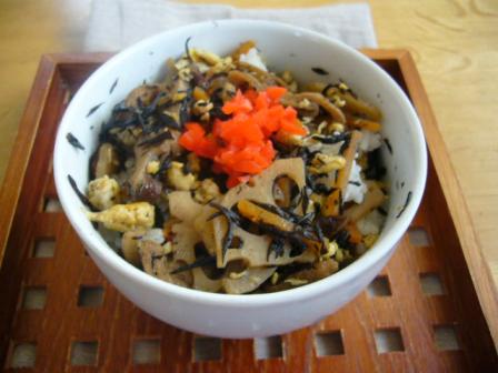 おはようございます。今日は秋晴れになるそうです。お天気がいい日に 大物を洗っておかねばと 寝具をがんばって洗濯中です。今日の朝ごはんは『ひじきの混ぜごはん*ごま油風味』昨晩にひじきを炊いていたので朝 熱したフライパンにごま油で卵を1つスクランブルエッグにして ひじきをいれて 炒めました。炒めた ごま油風味のひじきを白いごはんに混ぜました。 *天然生活 11月号*内田彩仍さんの私の好きなおしゃれ*ブランケット*chambre de nimes ボーダースパッツ