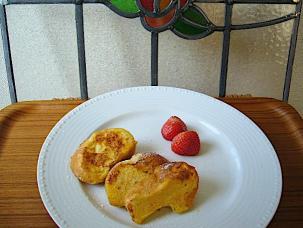 2日前に焼いた リング型に入れて焼いたパンの水分がすこし抜けた感じがしたので フレンチトーストにしておいしいパンに復活!リング型で焼いたパンの面積を広くするつもりでカットしてたまご液に(牛乳1/2cup たまご1個 バニラオイル3,4滴)つけて あたためたフライパンにバターを入れて パンを焼きました。やっぱり 食べる前に粉砂糖をかけると おいしい!私が母によく作ってもらった味といっしょだ♪明日は母の日「お母さんいつもありがとう~」1日早いけど感謝の気持ちとメロンが届くよ~♪下記のランキングに参加しています。クリックしていただけると励みになります