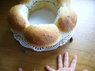 今日のパンは ママ友ちゃんにプレゼントする「黒ごまいり お花型パン」photoですデジカメをかまえているあいだに 娘の小さな手がのびてきました。「ちょうだい」って♪ おちびの分もちゃんと焼いたよ~♪ noopy*sのパンも紹介していただいてます♪楽天【予約】 お料理好きさんたちが気がつけば何度も作っている定番レシピ 157下記のランキングに参加しています。クリックしていただけると励みになります