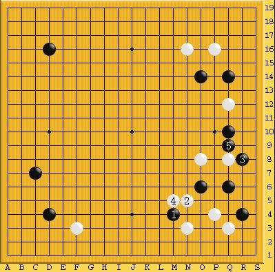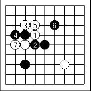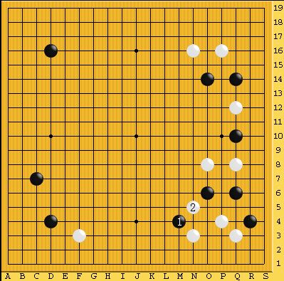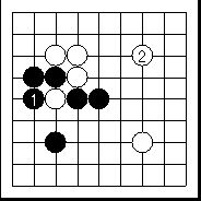 昨日、竜星戦を見ていたら解説で信田プロが興味深いことを言っていて、珍しく(失礼)感心した。曰く「碁は利かしのゲームである」とのこと。なるほど、そう言われればその通りである。 強い人と打つと、巧みなタイミングで様子見を打たれて、それにいくつか利かされて受けているうちに大差で形勢不利になってしまっていることがしばしばある。 また、その受けた手自体は利かされとは言えなくても、その後の展開によって利かされになってしまう事も多い。そういうのを上手な「様子見」というのであろう。 「碁は利かし」というとちょっと味気ない気もするが、碁は石の能率を競うゲームでもあるので、相当に本質を衝いた言葉だと思う。 相手の様子見に対してすぐに利かされになる場合は、それに気づくのは比較的簡単である。しかし、その後の展開によって最初の手が利かされになってしまう場合がある。その展開に気づいて利かされを避けるのはかなり難しい。実力の差が出るところである。 以前にも紹介した図であるが、今日の話題に最も適した題材なので再掲する。黒はアマ4強の平田先生で、白は私、。今、黒1に対して白2と反発した場面。さて、ここで黒の次の一手は?これだけ前振りしても難しい問題かも知れない。本日の局面