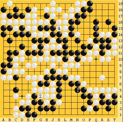 ネット碁より。図は私の白番で大差で白良しの終局直前の場面。ここで見損じしているのに気づいていなかった。手のない所に入れた黒1は、単に読めてないのかと思った。黒3で気づきそうなものだが、単なる嫌がらせかと思ってしまった。そういう輩がかなりいるからである。甘い!次の手を見て愕然。局面1 以下1から3で一手寄せ劫。ダメが詰まるまで白2で3に置けば死になのだが、ダメが詰まって事情が変わったのをうっかりした。局面2 ところで韓国製のネット対局場では、当然ながら国によって人の考えが違うのを実感する。自分から対局を申し込んで対局設定も希望通りなのに相手を見て止めてしまうとか、負けた時に挨拶文を送る暇もなく再戦申し込みの画面が出てくるとか、高段者でも意味のない着手や引き分け要請を繰り返して勝敗をチャラにしようとする輩が多いことなどは、日本人には違和感が強い。 面白いのは、クリックミスをした時の引き分け要請は本当にクリックミスか分からないようなケースでも認める人が多いこと。彼ら流の武士道なのだろう。