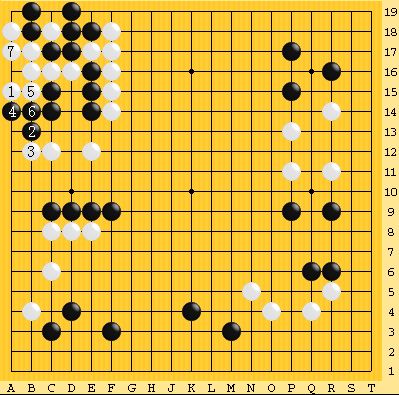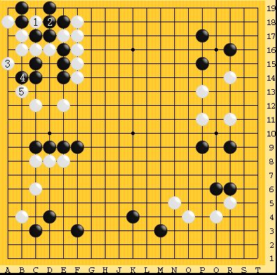 以下の白3とこすむ手が成立した。黒4には白5で一手寄せ劫になる。