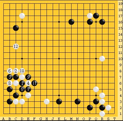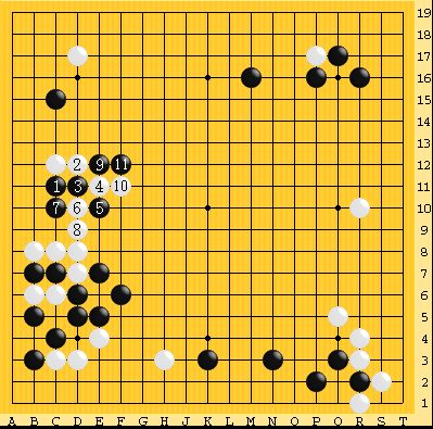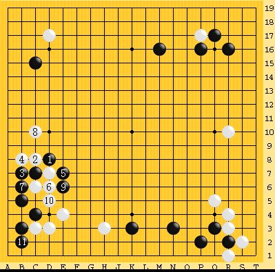 仮に以下のような図になれば黒の注文通りで、左辺の黒を捨てて左上・上辺で黒が主導権を握れる。